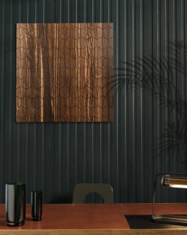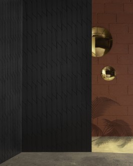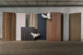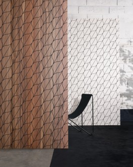 Cette collection confronte différentes essences de bois aux veinages apparants à des motifs géométriques et architecturaux.