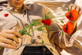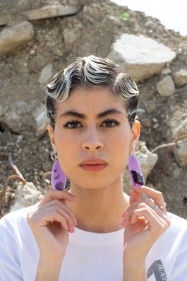 Fusion des boucles Hortorium et des pierres Tomanowos : en lévitation dans des fluides colorés, translucides ou laiteux, ces dernières se jouent de la gravité et deviennent des ornements cosmiques.