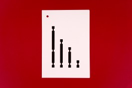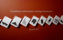 La présentation de l’exposition, son plan, ainsi que tous les cartels sont disposés en libre service invitant à les compiler, pour s’en faire un catalogue prenant l’apparence d’un nuancier. Un mur de gommettes offre en fin de parcours la possibilité d’exprimer sa créativité, laissant penser qu’avec un nombre de formes restreint il est néanmoins possible de réaliser une infinité de combinaisons.
