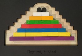 Pour cette exposition présentant des jouets réalisés par des designers, le parti pris est de donner à voir l’imbrication des éléments, leur construction et l’importance de la manipulation.
