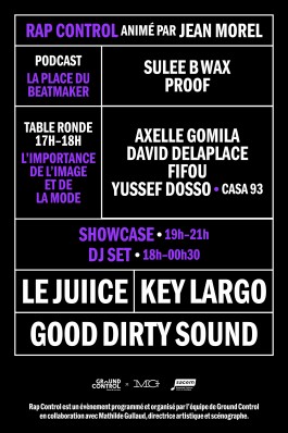 Cet événement est orchestré par le journaliste et animateur Jean Morel, entouré de : Fifou, David Delaplace, Axelle Gomila, Yussouf Dosso de Casa 93, ou encore les producteurs Sulee B Wax et Proof. Ces échanges sont suivis d’un concert de Le Juiice & Key Largo et d’un DJ set de Good Dirty Sound.